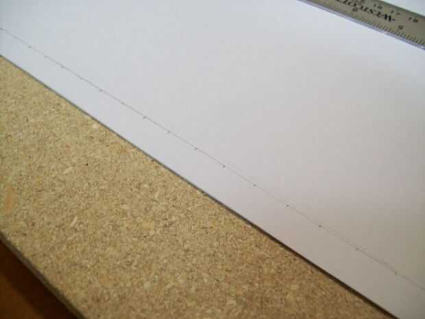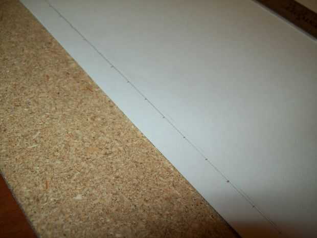 En esta línea, la marca de cada mitad de una pulgada. Una vez hecho esto, nuestra su tachuela y empuje que en estas marcas de la señal. Asegúrese de que pasa a través de todo el camino.