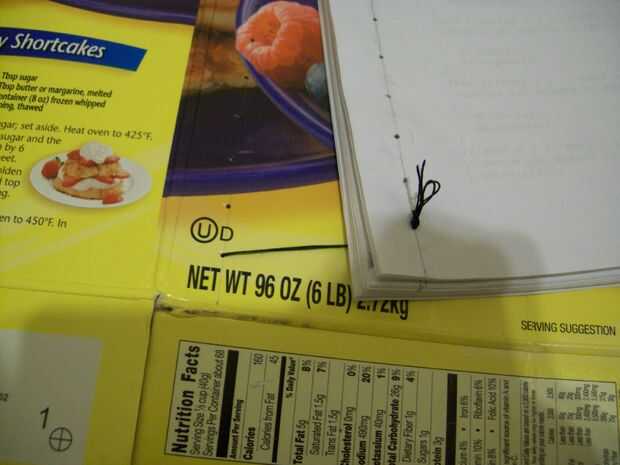 Antes de coser todo junto, decida si desea llano lado o lado decorado hacia fuera de la caja. Una vez que su decisión, asegúrese de que el lado opuesto es hacia el papel al estado para coser. Prefiero a mina que la llanura marrón, así que puedo etiquetarlos, pero una persona más interesante sólo puede optar por una notebook de Bisquick patrocinado.