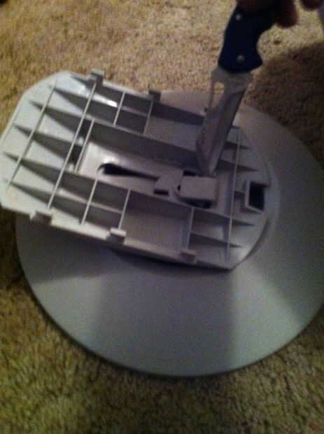 Luego perfore un agujero en la parte centro del soporte (la mayoría debe tener un círculo en el medio ya) grande bastante que atornillar apenas puede hacer a través de.