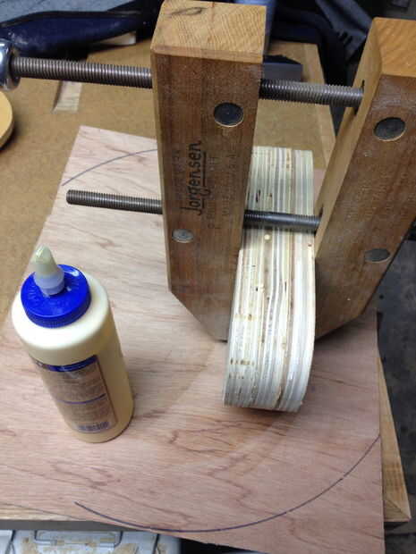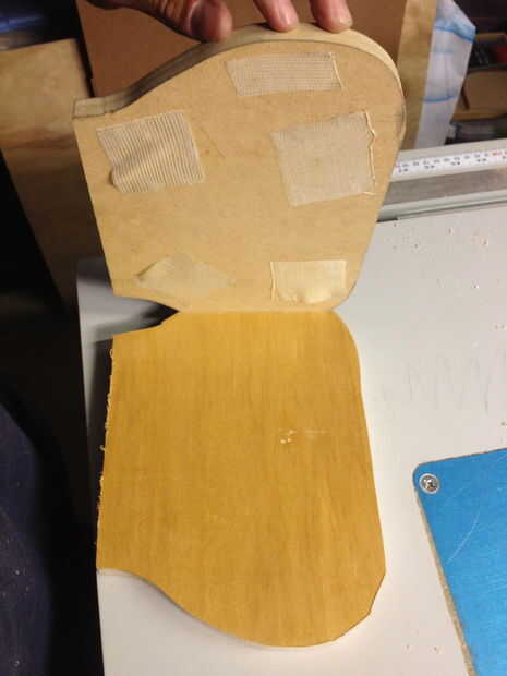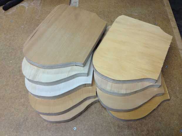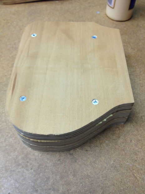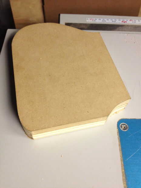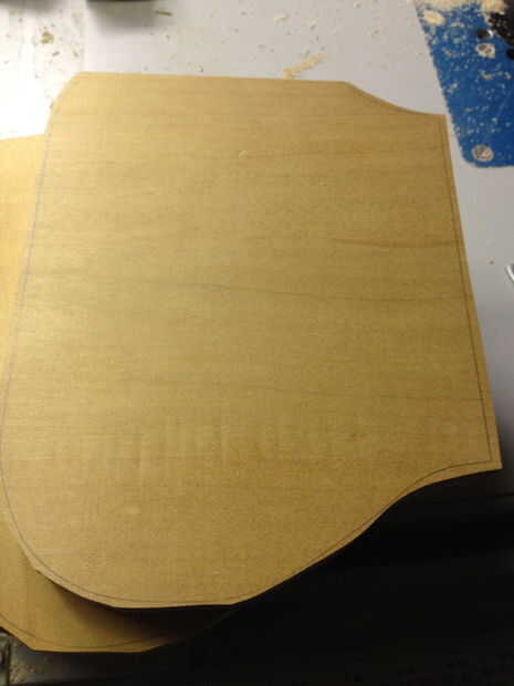 Transferí mi patrón de perfil a un pedazo de chatarra MDF por lo que podría hacer un patrón de producción. el patrón tiene un área plana en un extremo para acomodar la placa de apoyo superior que fue unida a cada pierna en el ultimo paso.