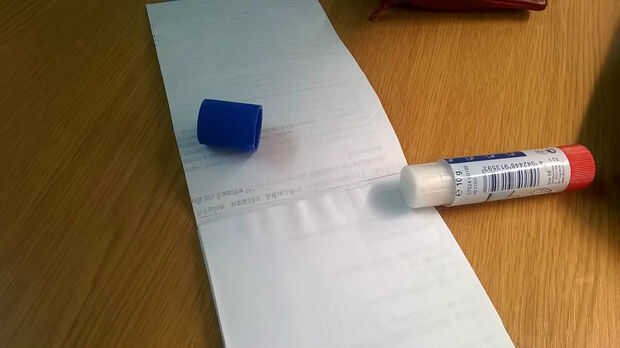 uno por uno usando el pegamento, a partir del final al principio con el lado limpio hasta las hojas. Cuando todo está hecho puede presionar algo pesado sobre ella durante 1-2 horas hasta que el pegamento se seca.