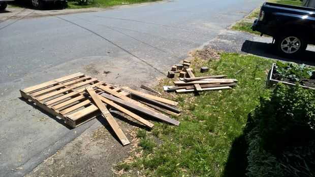 La paleta de bloques en este ejemplo tenía clavos comunes, por lo que la eliminación de la madera es tan sencillo como usar la palanca para aprovechar los huecos en el material hasta la separación.