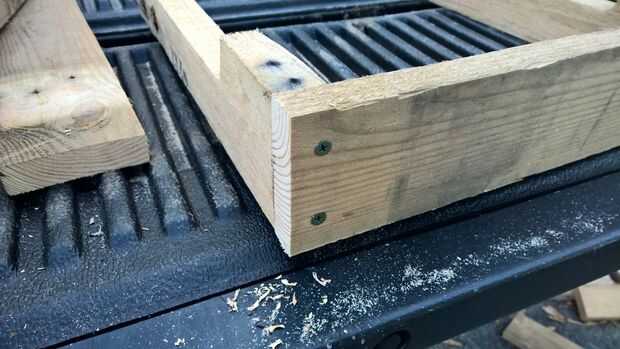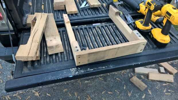 Medir y cortar los tres listones de su tarima reciclada para crear el marco de trabajo para el fondo y los lados de su pecho. Tener en cuenta el espesor que se añade a la parte inferior y el superior más adelante.