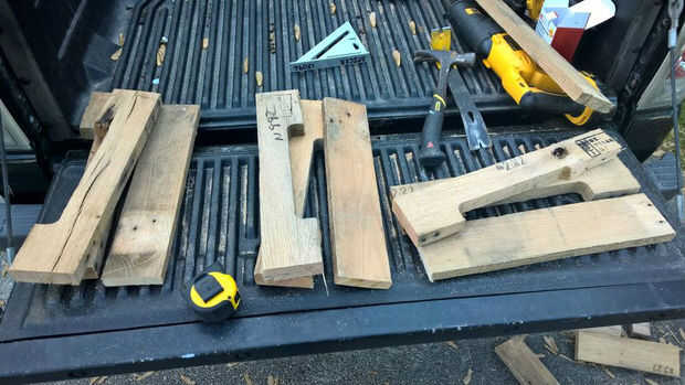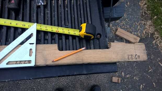 El larguero con las muescas que conforman las costillas verticales son 16,5" en longitud. El travesaño que forma la base es de 16" de longitud. Esto te permite obtener dos piezas de una sola zanca o una tabla.