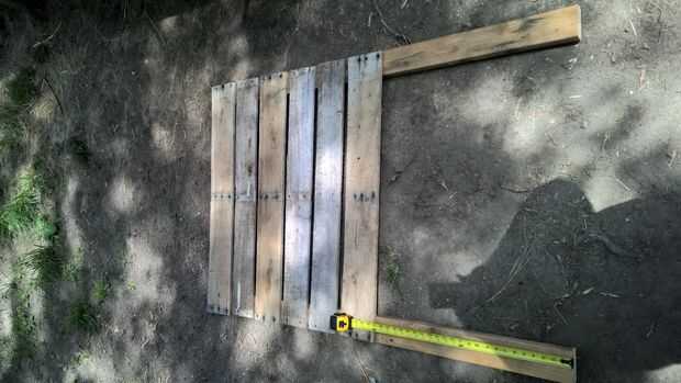 Paletas son típicamente 40,5" amplia para que las caras delanteras y traseros se pueden construir con un montón de medición del sitio. La medición de la parte superior de la cubierta inferior es la única cosa que debe tenerse con la cinta. Se midió a 2' al pie de la pierna.
