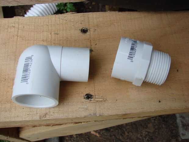 El plan es para conectar los dos barriles para que sólo necesitamos un flujo de canal para los barriles y un desbordamiento de solo dos barriles. Mirando las piezas de plomería jardín en Lowes (USA Home mejora Store) pude armar un sistema que funcione. Afortunadamente lo hicieron. Las piezas que necesita