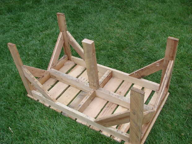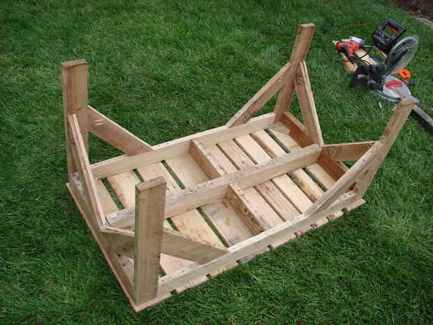 Pero ¿qué pasa si me equivoco? Esta cosa podría caerse y lastimar a alguien muy mal. Así que hice otro viaje de forrajeo y volvió con una plataforma adicional. Se trataba de una plataforma estándar de 60". Las vigas y tablones de la plataforma eran mucho más gruesos que los de una plataforma de 42" y habría hecho una buena plataforma para empezar esta versión con. Las vigas son aproximadamente 2" de grosor en la plataforma de 60" versus 1-1/8" en la plataforma 42".