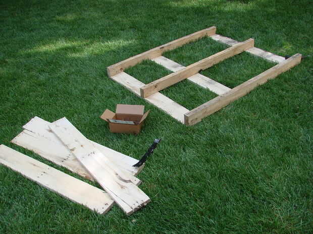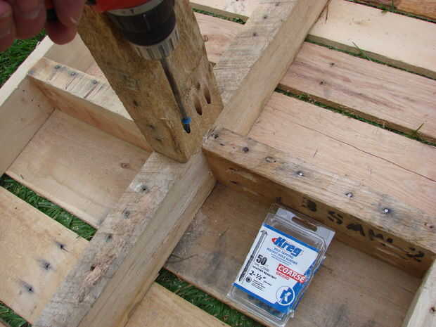 La viga de centro se redujo a aproximadamente 45 ½". Se necesita medir su dimensión exacta y cortar por consiguiente. Pegamento y tornillos en su lugar utilizando tornillos de agujero de bolsillo de 1-1/4".