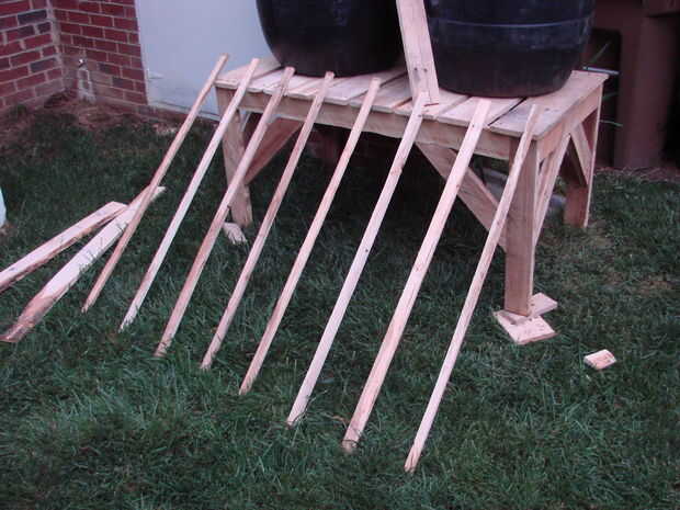 La construcción de la espaldera consume más o menos lo que quedaba de la madera útil de las 3 plataformas principales.
