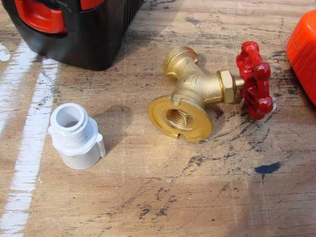 Taladro un agujero de 5/8" en la parte inferior del cañón de 5" hacia arriba desde la parte inferior. Con una arandela de goma a ambos lados del adaptador del barril plástico, tornillo del PVC en la parte posterior del grifo - grifo está en el exterior del cañón y el adaptador de PVC en el interior... El kit de RainBarrel USA tiene el adaptador de PVC de tamaño correcto que atornilla en la parte posterior de la llave. Esto terminó siendo un trabajo de dos personas con una persona, cabeza y hombros dentro del barril (apestoso!) aferrarse a la guarnición del PVC y la otra persona girando la llave hasta que sella. Luego llenar el cilindro hasta que esté aproximadamente 1" en el grifo y asegúrese de que usted no tiene haya fugas. Si tiene fugas, sujetar el grifo más. Tenga cuidado de no apretar en exceso.