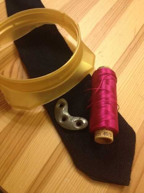 La confesión de un acaparador... No me gusta tirar nada y tienden a abastecerse de lo que normalmente parece sin uso. Esta vez fue este código plástico oro Nº 6. Me dijeron que lo imposible era reciclar, pero montado en mi brazo y parecía ser la base perfecta para una pulsera! También tomé una corbata (que compré esta caja enorme con 500 lazos en justo dos años atrás), algunos metal mi gran guardado hace mucho tiempo y he heredado. Entonces tomé el hilo de seda rosa hermoso heredada también de alguien de la familia que había sido un pañero.