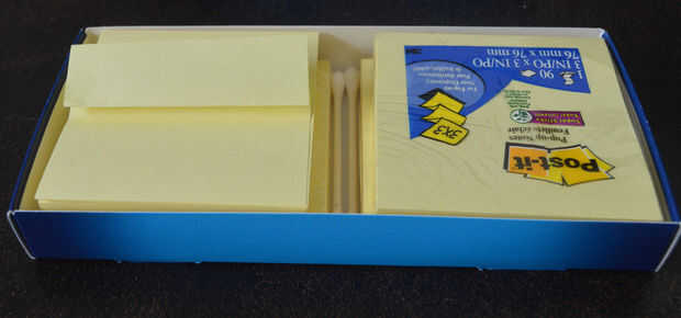 esto es un cuadro poco ordenado que está fresco todavía útil. También es una gran manera de reciclar todas sus notas adhesivas usadas en el trabajo. Sólo asegúrese de que el jefe no está mirando.Se necesita:Notas adhesivas cuadradoTijerasuna plumatus