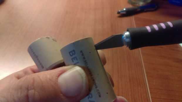 10) cortados cuatro pequeños agujeros en la parte inferior del cuerpo de corcho, aquí es donde van las piernas Irán. Que desea cortar los agujeros para que las piernas se cree una "V" y su Reno más estabilidad.