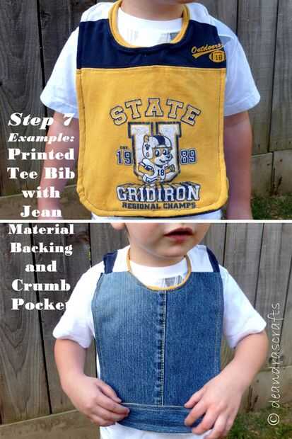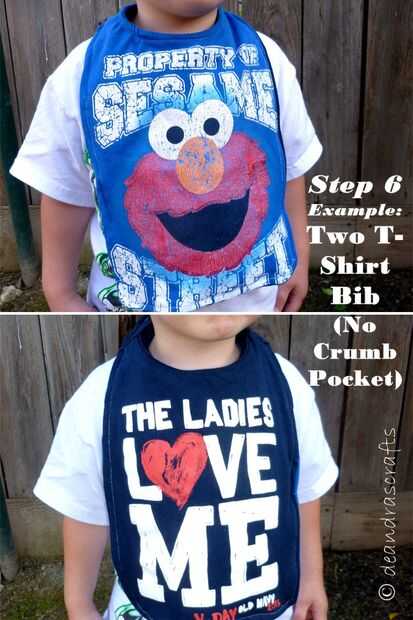 (Paso 6) Camisa de 3T impresa en ambos lados, ninguÌ n bolsillo recoge-migas guardar diseños - las fotos de este tutorial babero muestran distintas formas de utilizar la plantilla versátil.