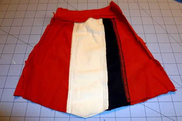 Usé tres hojas del patrón, donde dos de esos patrones fueron cortadas por la mitad y pegado abajo utilizando las guías impresas en el patrón para alinear los bordes.