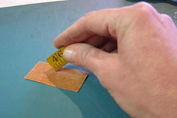 Utilizar la lija para suavizar los bordes de corte de las piezas de la regla y para redondear ligeramente las esquinas.