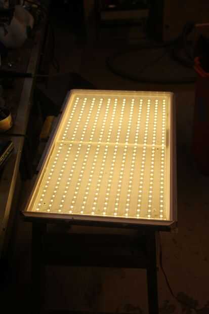 Conexión 12VDC a las tiras antes de montar las placas de policarbonato por encima las tiras de LED. Si todavía está bien, proceda al siguiente paso.
