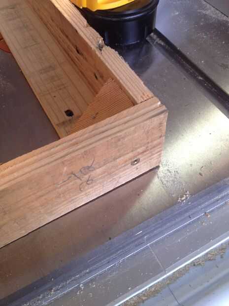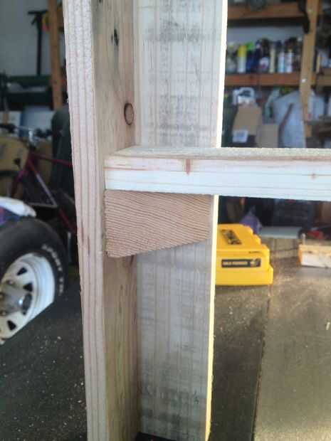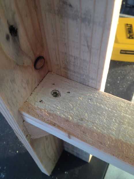 Una vez que el lugar se taladraron previamente un poco de pegamento en el triángulo y tornillo 13" pieza en su lugar a cada lado. Usted también puede terminar en uñas para añadir soporte adicional.