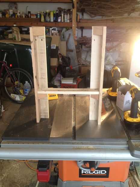 Ahora Mida la distancia desde el exterior de una pierna hacia el exterior de la otra. Esto le dará la distancia para cortar uno de los 15" tableros de la parte superior