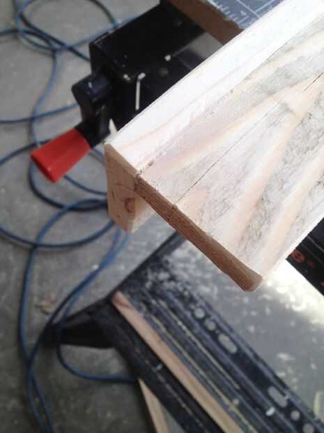 Ahora sería un buen momento para tomar la lijadora excentrica con algún papel de grano 100 y poner un pequeño chaflán en todos los bordes de la Asamblea de la pierna. Asegúrese de obtener la parte inferior de cada pierna buena, que esto ayudará a evitar que la madera de la división