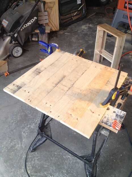 Ahora use una lijadora de banda con un cinturón de grano 50 para comenzar con. Trabajar en un patrón de esquina a esquina de la pieza de trabajo. Esto ayuda a eliminar las diferencias entre los bordes de las juntas pegadas. tienes que hacerlo desde cada una de las cuatro esquinas.