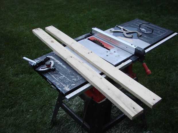 - Sierra de mesa - para el ripeo de las tablas en tablas de 3" de ancho. También puede utilizar la Sierra de mesa para cortar los tablones a la longitud pero la sierra ingletadora es mucho más eficiente para esta tarea.
