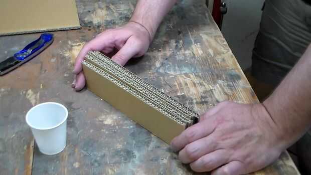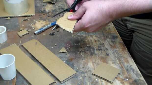Simplemente tomó una vieja caja de la impresora HP de la oficina y algunas de ellas cortadas en tiras. Es interesante porque cartón tenía un patrón similar al grano de madera. Me gustó mucho la forma de "grano final" de la corrugación apareció, por lo que he intentado mi mejor preservar.