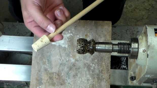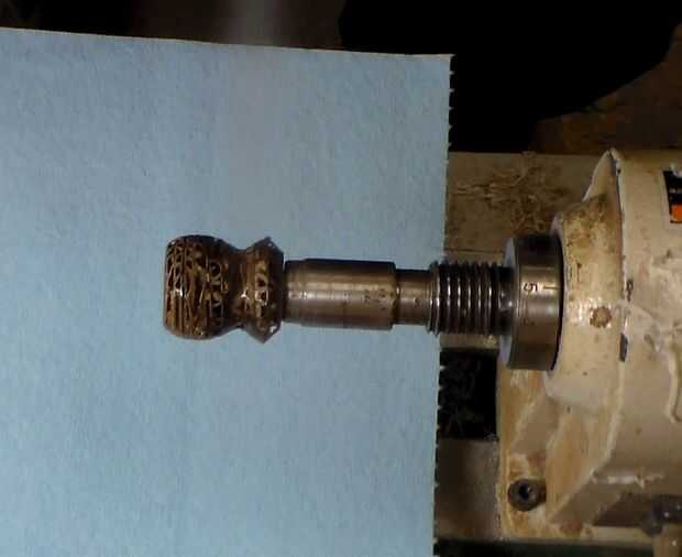 Resultó bastante fácilmente con mi gubia del huso, aunque tuve que parar y afilar dos veces durante el proceso! Luego lijar con grano 400 y le dio unas capas de spray de laca. Después de secado de la laca, usé un diente pick a pick pedacitos la suelta hacia fuera si los agujeros. Usted puede ver y soplar el aire justo por todos los agujeros. De hecho parece como cartón, pero es rock duro como epoxy.