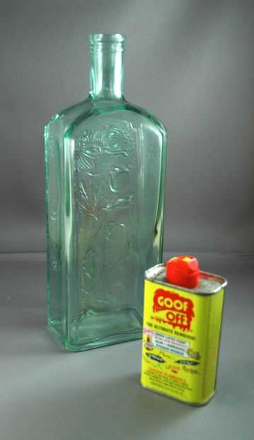 Limpiar la botella muy bien dentro y por fuera. Lo más difícil para mí fue bajar el maldito pegamento de la etiqueta. Si usted puede conseguir una botella de etiqueta-libre, mejor para usted. Este removedor de goo funcionó bien para mí, pero tuve que conseguir el último de él apagado con el removedor del pulimento de clavo.