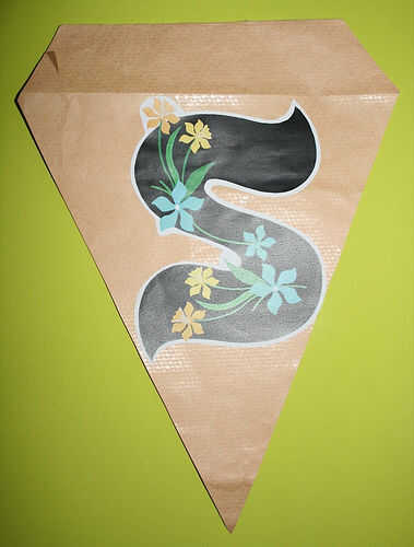 Añadir su decoración al frente del banderín. Imprimí letras del arte de clip, porque no soy muy artística, pero realmente puede ir todo a personalizar su escribano.