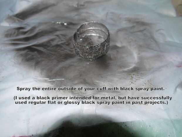 Rocíe toda la fuera de su brazalete con pintura en aerosol negro.