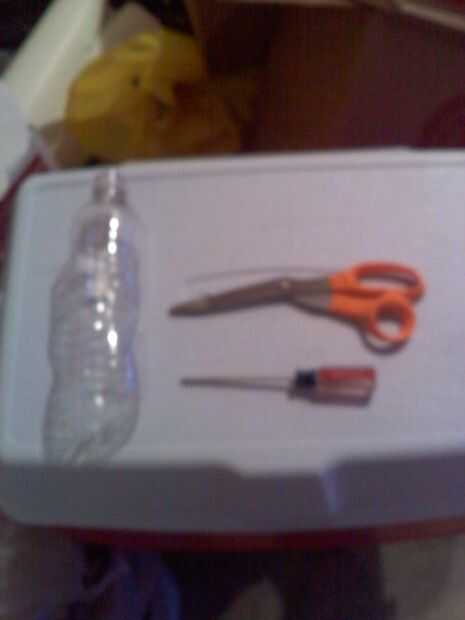 Todo lo que necesitas es: tijeras, una botella de agua plástica y recomiendo un destornillador.