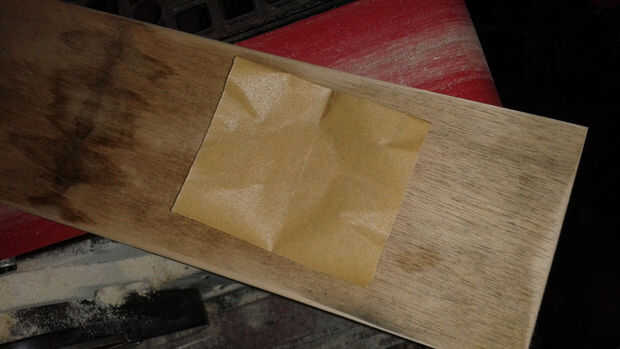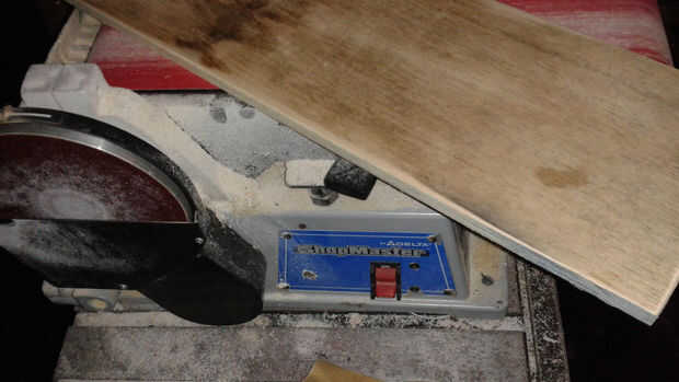 Corté un estante de madera de desecho. Arena te lijadora de banco y me había terminado de lijar a mano.