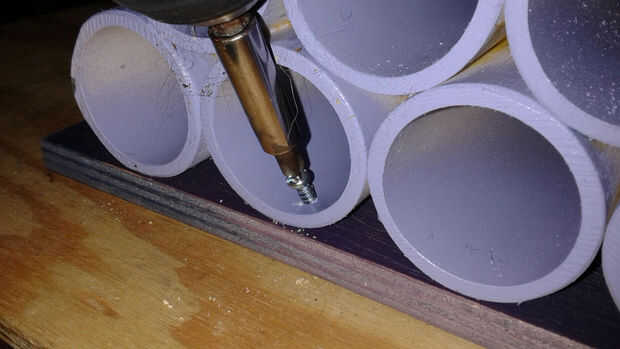 Hola, esta es una manera rápida de reciclar un tubo de PVC de 4 pies (sobrante de una reparación de inicio), en una maceta.Necesitamos:Una tubería de PVC de 4 pies.6 tornillos - 5/16 de ancho x 3/8 in de largo2 abrazaderas de 4, con doble punto de fi