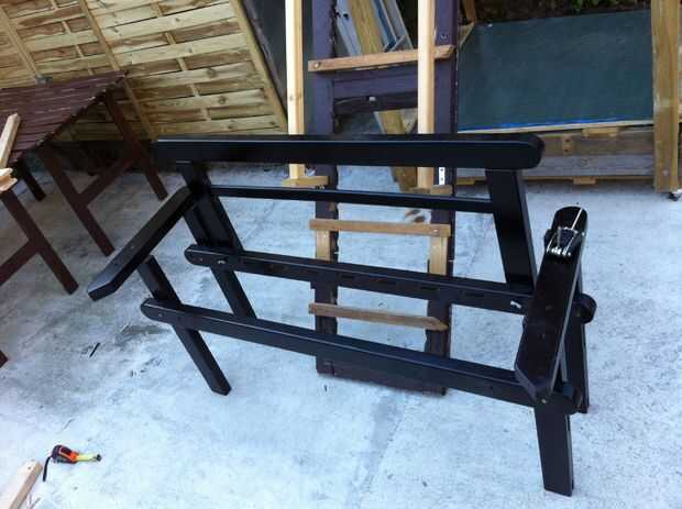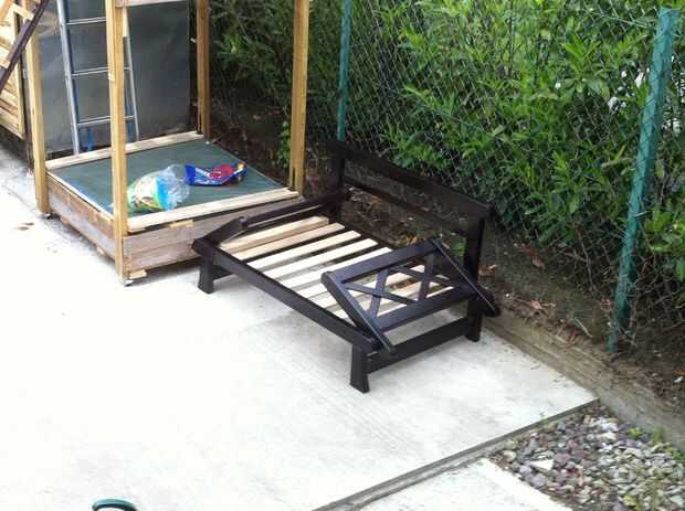 lista de materiales reciclados:paneles de valla de cedro (los lados se construyen dos paneles de espesor por 1/2 un panel).1/3 de un bastidor de futón (esta hecha la cama del jardín)2x4s de un proyecto anterior (para reforzar la estructura de futón)p