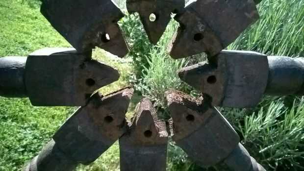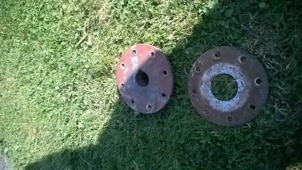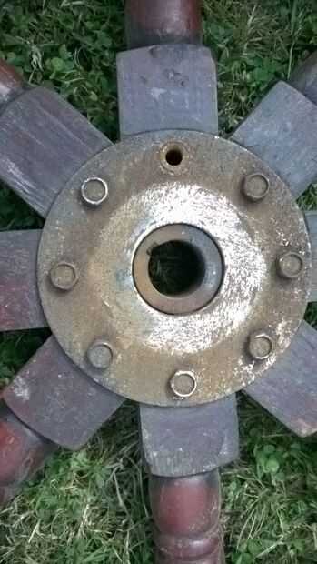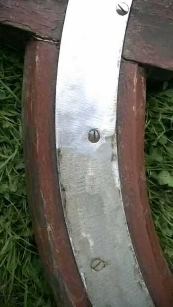 Luego con una llave de quitar la placa interna de la caña, esto debe hacerse para arriba de dos piezas separadas de metal una pieza plana y de que va todo el camino aunque el timón y soporta las piezas de madera que van en el centro de la rueda. Limpie el moho fuera de estas dos partes con la amoladora de ángulo el mismo acabado que las bandas.