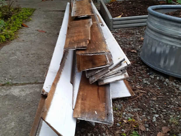 Nuestro tercer gran Consejo es ser tu propio mejor reciclador. No sólo derribar nuestro viejo cobertizo de metal mierda y tirarla, fuimos capaces de reciclar gran parte de las vigas del piso y revestimiento de metal y repensar en el nuevo diseño. Utilizamos pintura, madera contrachapada, metal corrugado e incluso tyvek casa abrigo de toda izquierda sobre de otros proyectos.