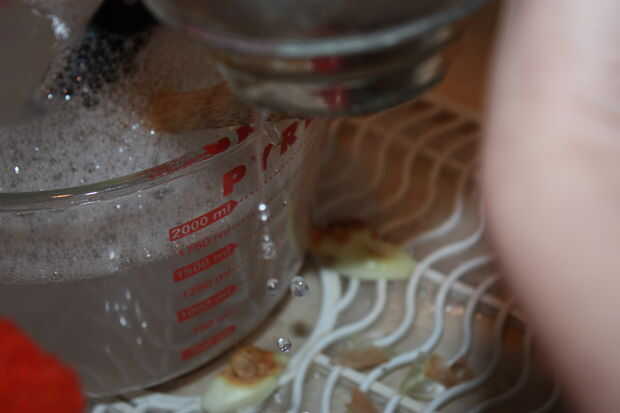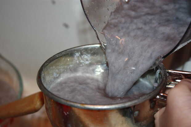 Vierta en el colador de malla hasta agua no está goteando hacia fuera.