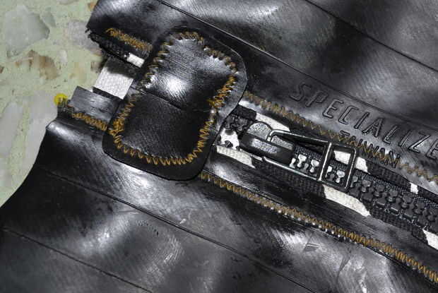 Añadir una pequeña pieza cuadrada u ovalada de tubo interno en ambos lados de la cremallera (cerrado), para eliminar todos los espacios abiertos.