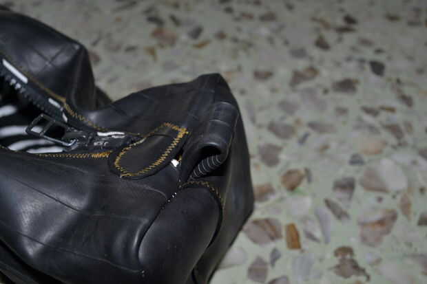 En un lado de la cremallera veías un pedazo corto de tubo interno de bici de la calle (Foto 2)