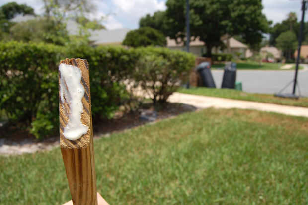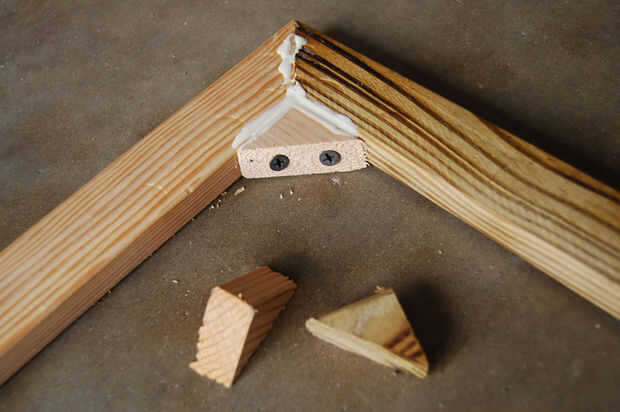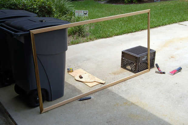 Este es el paso más difícil. Utilice el pegamento para agregar cierta rigidez y entonces utilizar un tornillo para hacer ángulos rectos. La mejor manera que he encontrado hacerlo (ya que los ángulos hacer deslizarse) es les apuntale en la hierba. Cuando comienzan a cavar en la suciedad, permanecen en su lugar. Una vez que un rectángulo, cuatro de sus triángulos pequeños usar como refuerzos para reforzar toda la cosa. Usé dos tornillos por cada triángulo y algunos pegamento de madera. Por ahora, debe tener un marco fuerte agradable!
