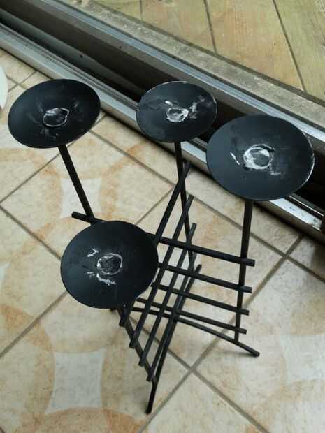 1) candelabros - las piezas reales que sostienen las velas necesitan ser aserrado. Este instructable supone que haber eliminado las partes que sostenga la cámara en su lugar antes de comenzar este instructable. Tengo mis candelabros por $1.50 en una venta de garaje. La persona que me lo vendió había aserrado estos de estos para mí.