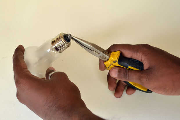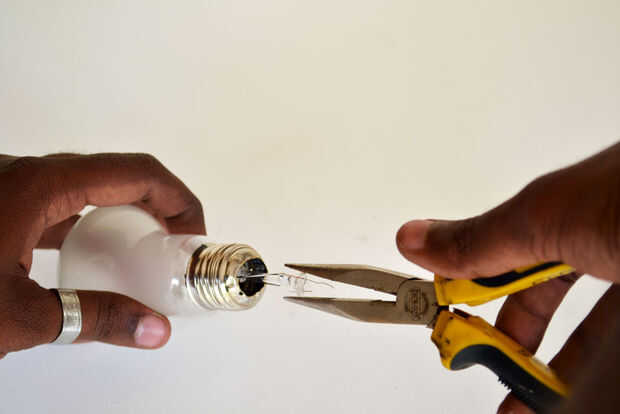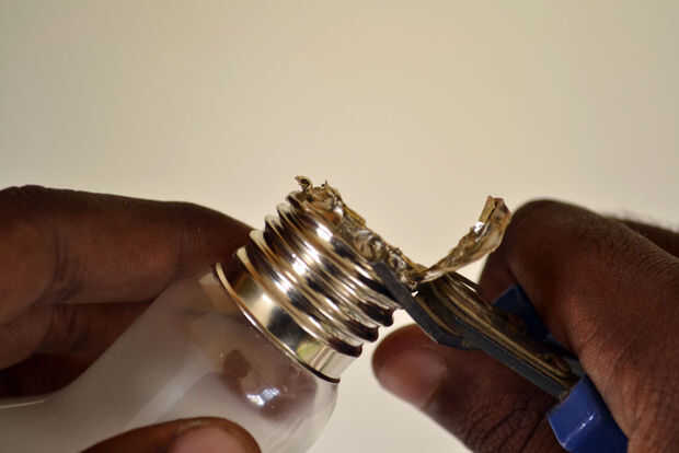 6. Recorte el exceso del metal si tiene alguno de la parte inferior de la bombilla con cortador de alambre. Esto realmente no es necesario si tienes un corte limpio. Pero si han irregular los bordes entonces usted puede recortarlo con el cortador de alambre.
