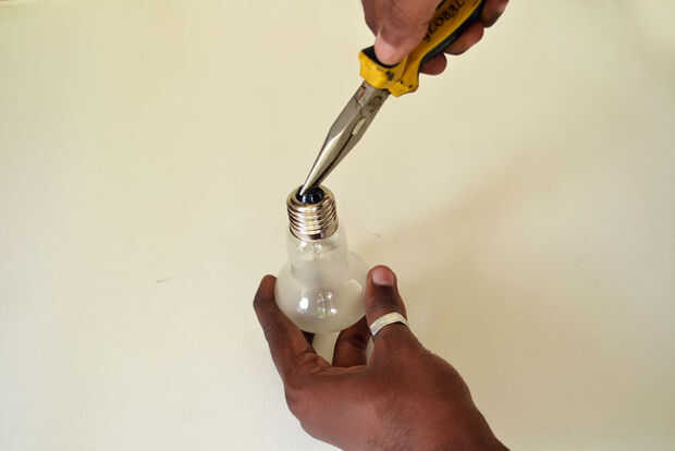 4. una vez que ha roto con cuidado saque el contenido de la bombilla. El reproductor de la nariz va a venir bien aquí.