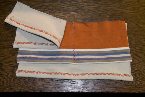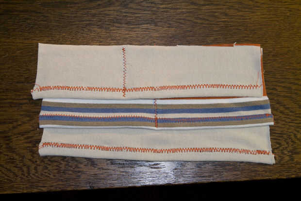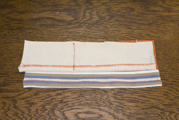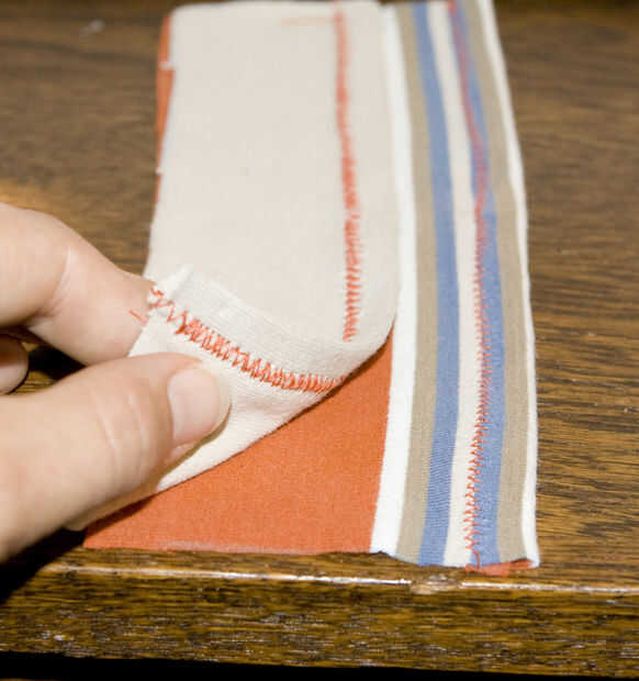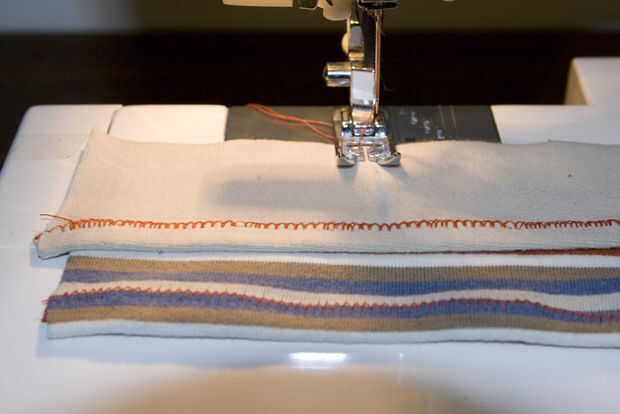 • Zig zag puntada a través de todas las asperezas de los bolsillos y la pieza principal, sobre un 1/4 de pulgada en de la derecha.