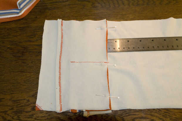 • Coloque el ensamble de bolsillo, cara abajo y todo plana, con el borde áspero en la marca que acaba de hacer.