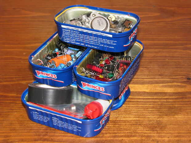 aquí es cómo hacer un estuche poco agradable de dos latas rectangulares vacías - si una lata Altoids no es suficientemente grande, esto podría ser una alternativa conveniente...El brillante diseño pintado en estas latas de anguila asada China era en