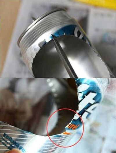 Cortar pequeños cuadrados en la frontera del óvalo y luego doblar dentro de la lata.