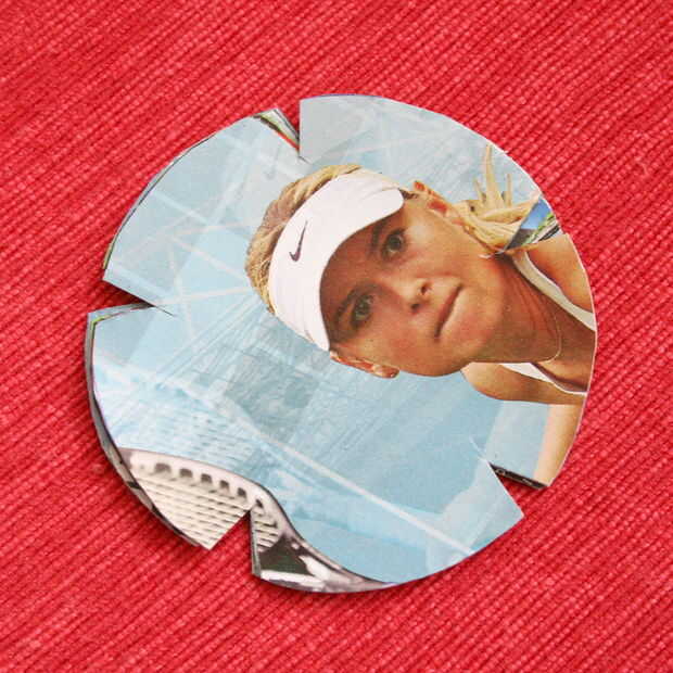 Con una pequeña pila de círculos en la mano, corte cinco muescas pequeñas alrededor del borde del círculo. Esto crea el efecto de pétalo y ayudará en la fase de plegamiento. Repita para todos los círculos.