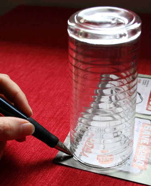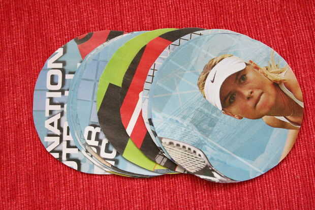 Utilizar un pequeño vaso de agua como un círculo plantilla y marca los círculos en su papel. Cortar los círculos. Película a través del corte final salidas para emparejar colores similares juntos. Esto ayudará a mantener un tema coherente.